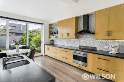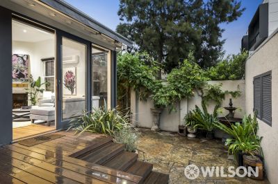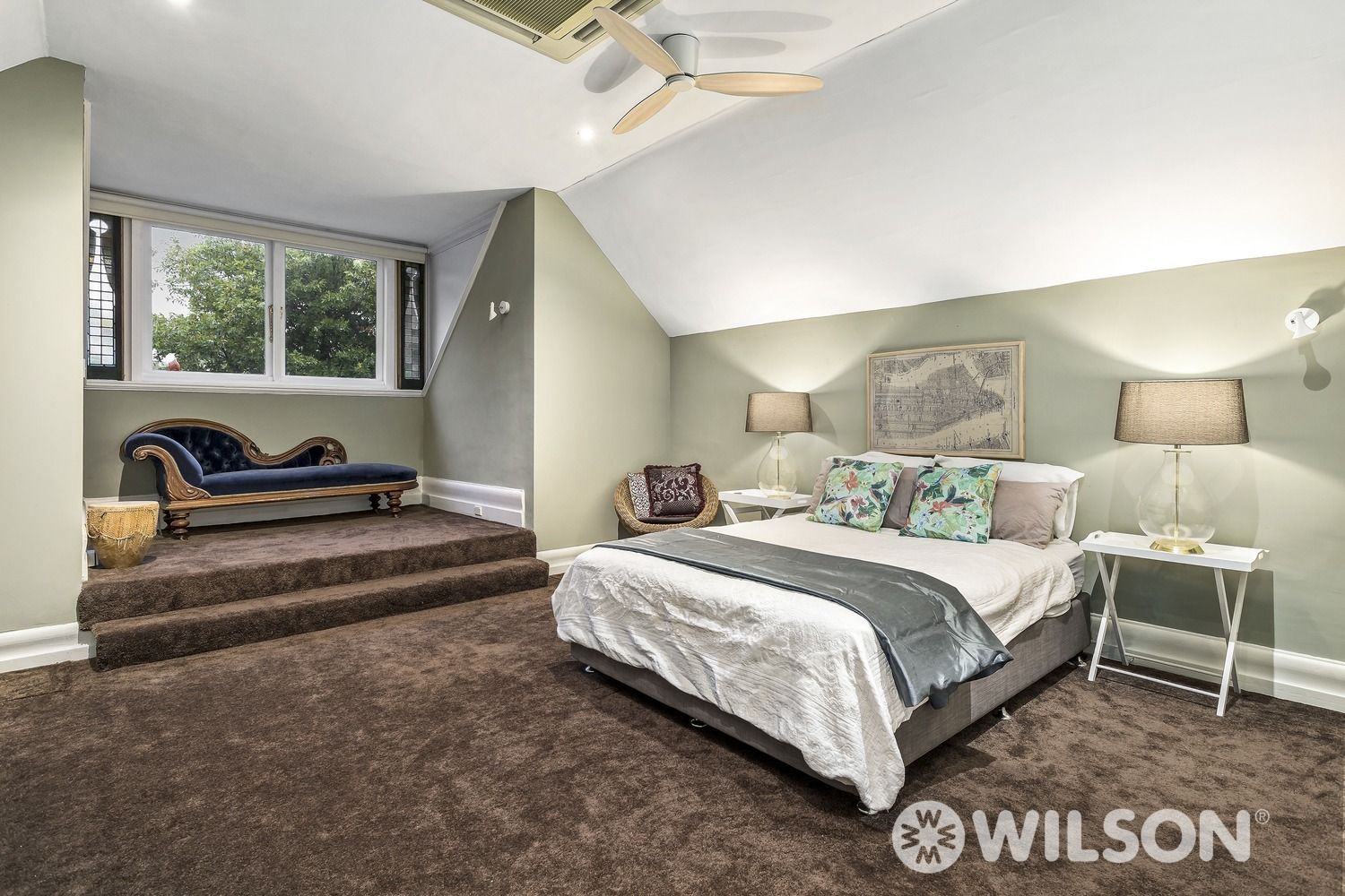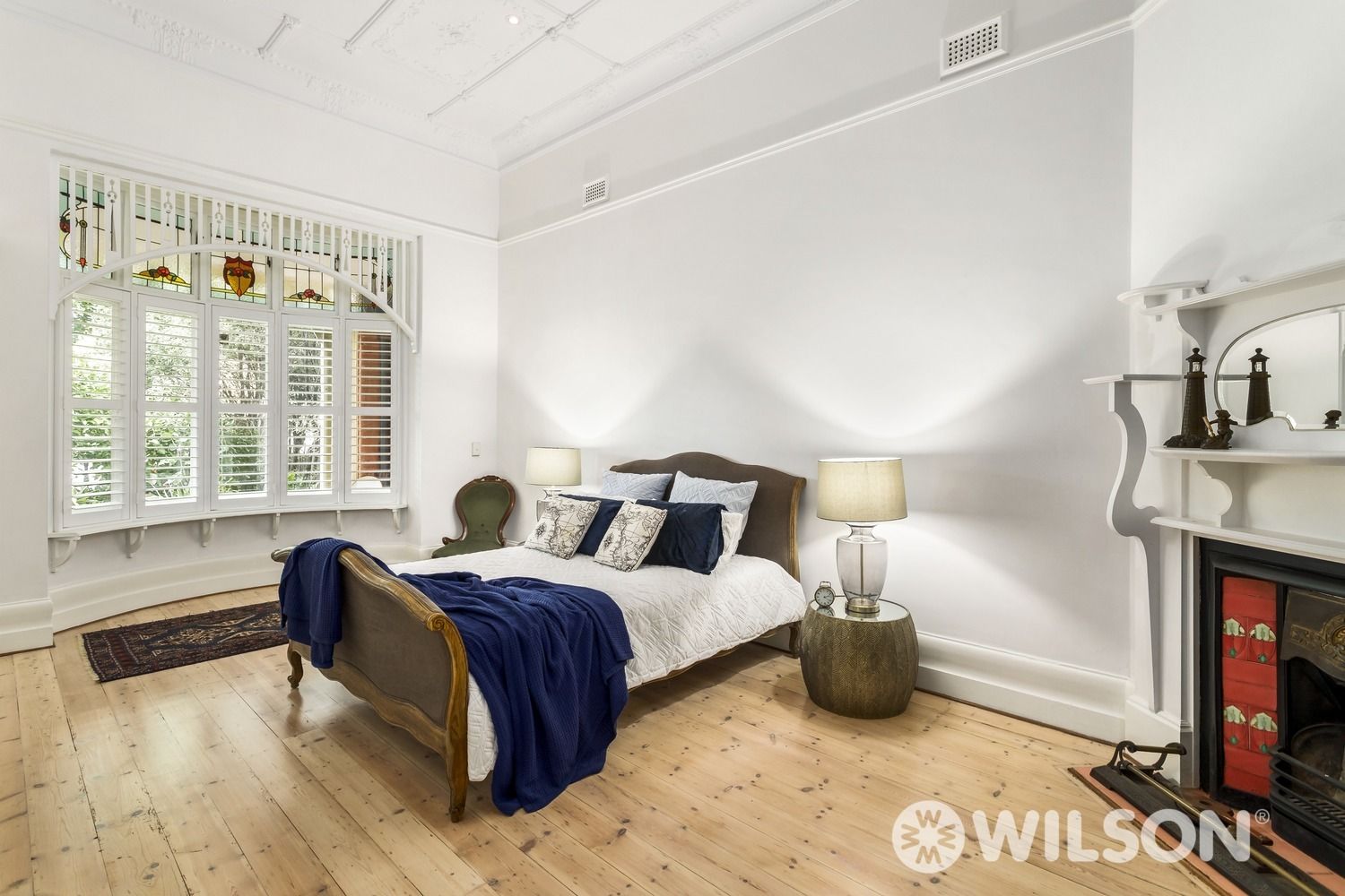 Grand proportions including separate dining and two king-sized bedrooms serviced by a designer bathroom. Upstairs, a sensational children's precinct comprises three additional bedrooms, a stylish bathroom and large retreat/ studio or bedroom overlooking the treetops of Park Street from the sitting window.