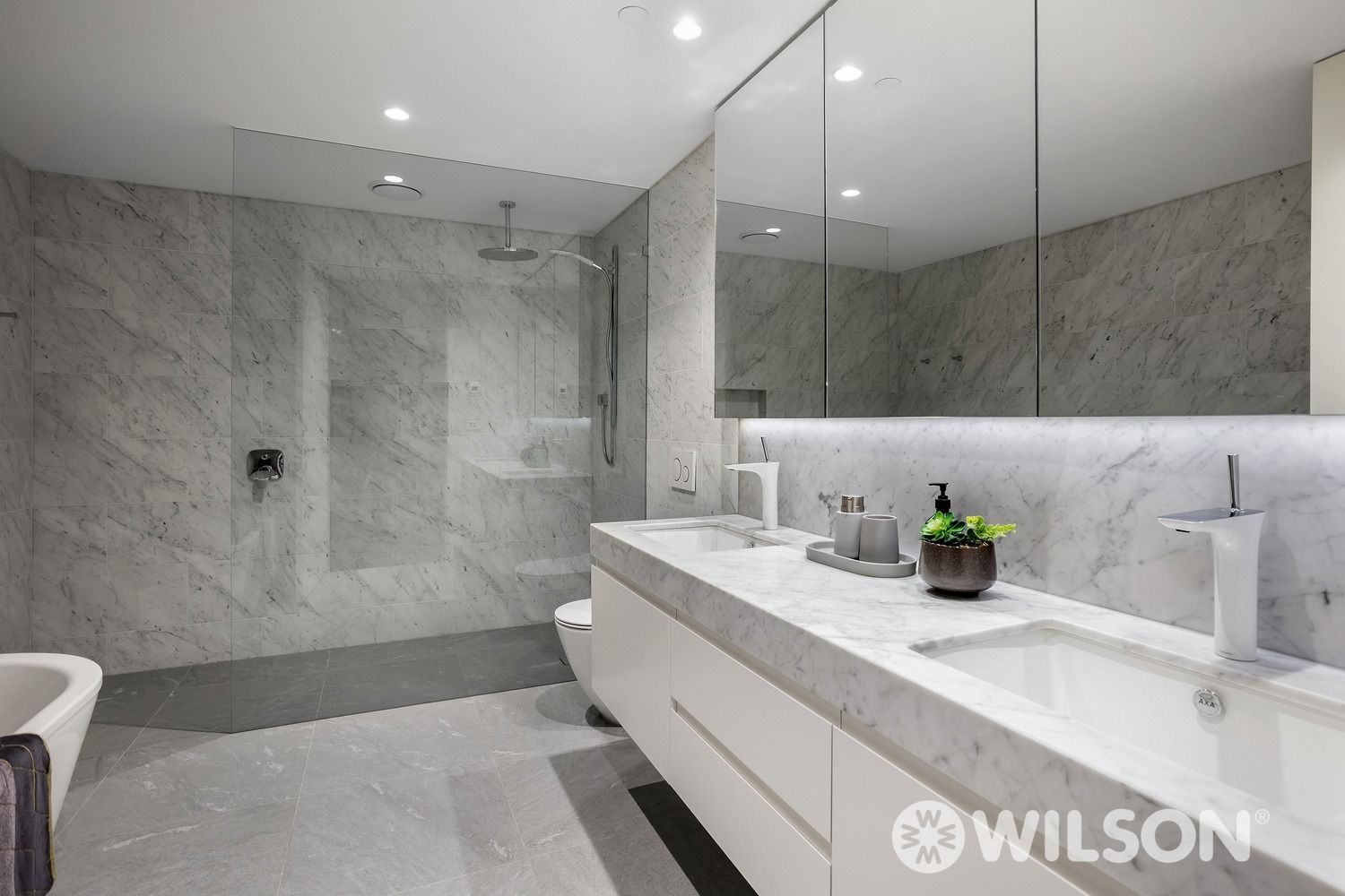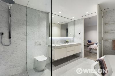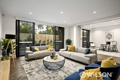 Attaining a brand-new achievement in sophisticated refinement, this superbly scaled residence delivers the absolute ultimate in contemporary class. Transcending conventional living with exceptional attention to detail, the glamorous interior goes above and beyond in its no-expense spared fit-out to create an exceptional milieu for superb all-occasion entertaining and relaxed everyday activities. The vast floor plan’s main focus is on a living and dining room embracing a dream connoisseur’s kitchen appointed with high-end Wolf cooking appliances, two dishwashers, integrated fridge and freezer, butler’s pantry and marble benchtops. The clean-lined, contemporary comfort transitions effortlessly outside to two alfresco courtyards and a private easy-to-maintain garden. With direct outdoor access, the second living zone could be configured as a home office or third bedroom to suit your requirements. A wonderful sense of luxury radiates from the massive main bedroom with dressing room, pampering ensuite bathroom with heated flooring, second bedroom, central bathroom and powder room. Two side-side car spaces next to a powered large storage cage, laundry, herringbone floorboards, dual zoned Daikin heating and air conditioning, plush carpets, video monitored secure intercom entry, bespoke built-in cabinetry , individual alarm system, and a striking light fitting suspended above the dining room are additional features. Enjoying an exclusive location in one of the finest and widest streets in Caulfield North’s Golden Mile, it’s close to transport, Greenmeadows Gardens and the retail, dining-out and lifestyle vibrancy in Carlisle Street and Elsternwick Village.