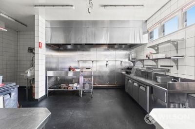 • Partial kitchen fit-out, including stainless steel fixtures, ready for your cooking equipment installation.