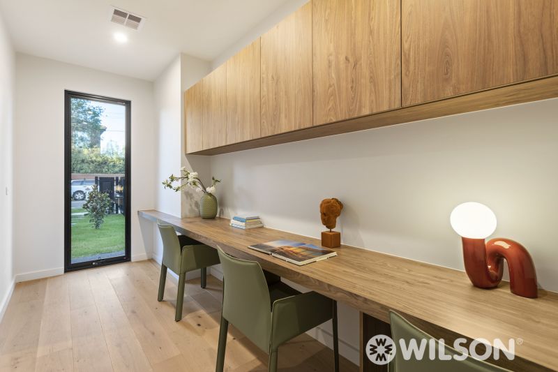Upon entering, you're greeted by an entry study, leading you past a separate formal large living area. The home naturally flows into a spacious 2nd lounge and dining zone, designed to maximize open space, natural materials, and a brilliant use of passive light that creates a bright and airy atmosphere. At the rear, large sliding doors open to reveal a beautifully landscaped alfresco space with a garden area that steps down, offering a serene and private outdoor retreat.