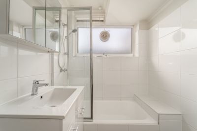 Two large bedrooms with built-in wardrobes, updated bathroom with separate toilet & laundry facilities.